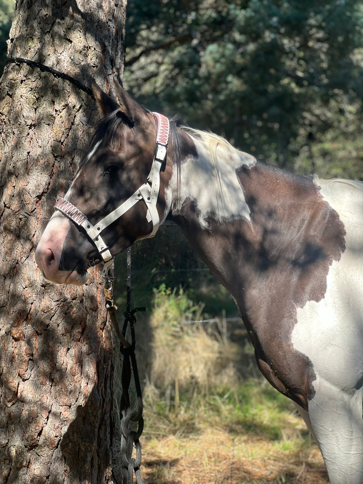 Le licol Vahinée, entre grande classe et practicité. 💎 Licol plat 25mm d’épaisseur, sublimé par deux magnifiques tressages Caspienne sur la muserolle et la têtière. Ajout de renforts possible, grands choix de couleur sur la base, la bouclerie, les tressages et les renforts, à vous de personnaliser ! 😎🦋